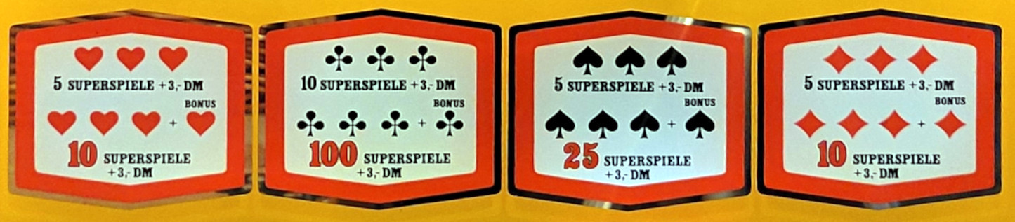 In Super Game mode, you get the chance to win more tokens if the center wheel stops on "yellow" (background). On yellow, three tokens are paid.